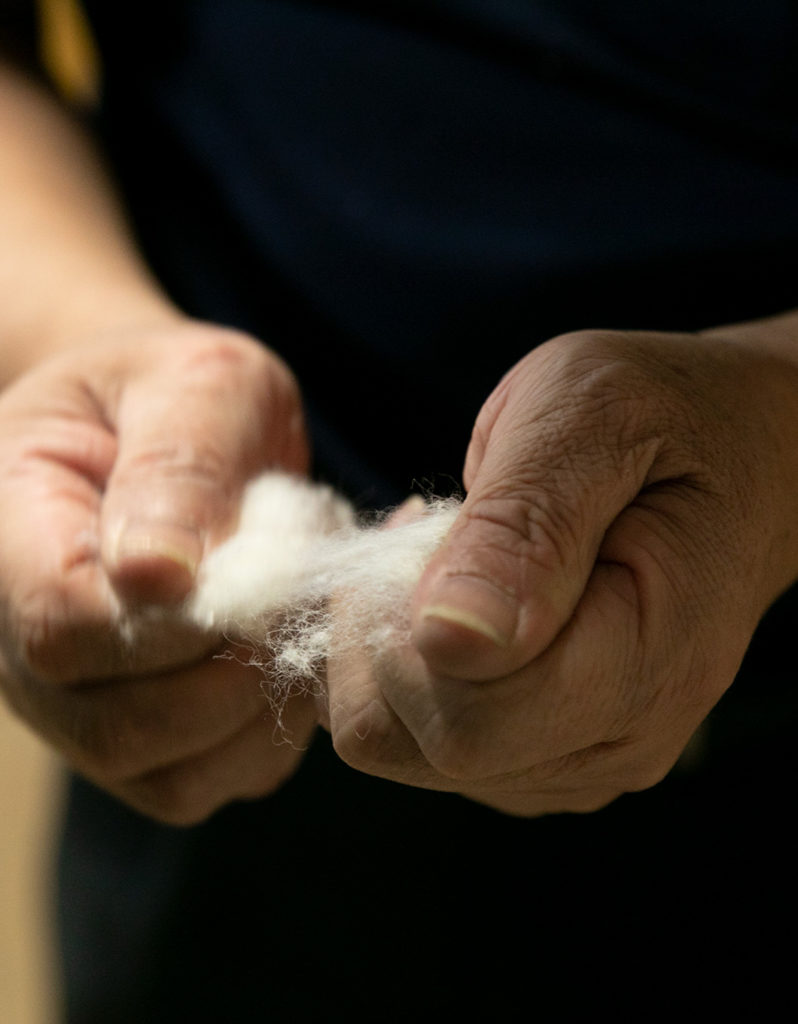 tennenで使用する繊維は、合繊が生まれる以前、長きに渡って重宝されてきた天然素材のみ。その中でも、オーガニックコットン、ヘンプ、メリノウール、和紙(木材パルプ)という5つにフォーカスしています。